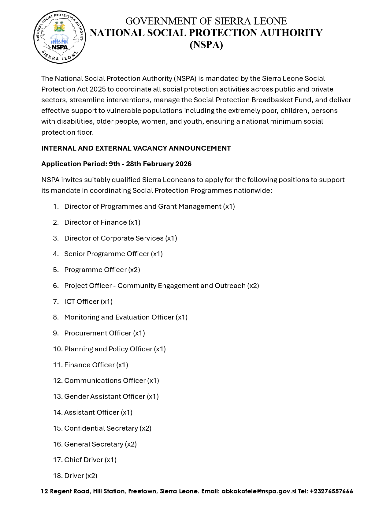 The mission of the Sierra Leone National Social Protection Authority (NSPA) is to coordinate and deliver effective, inclusive, and sustainable social protection interventions for the extremely poor and vulnerable populations across Sierra Leone. The Authority aims to streamline efforts among public and private agencies,